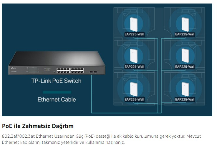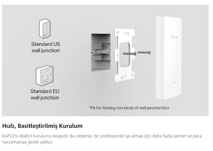 Tp-Link 1200Mbps Çift Bant Gigabit Duvar Tipi Access Point EAP225-WALL