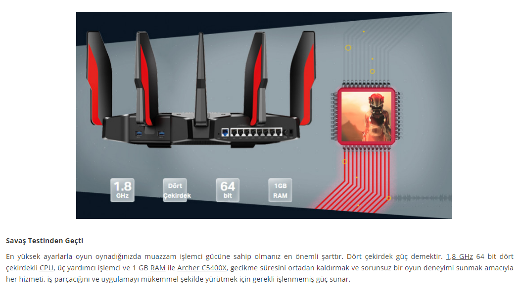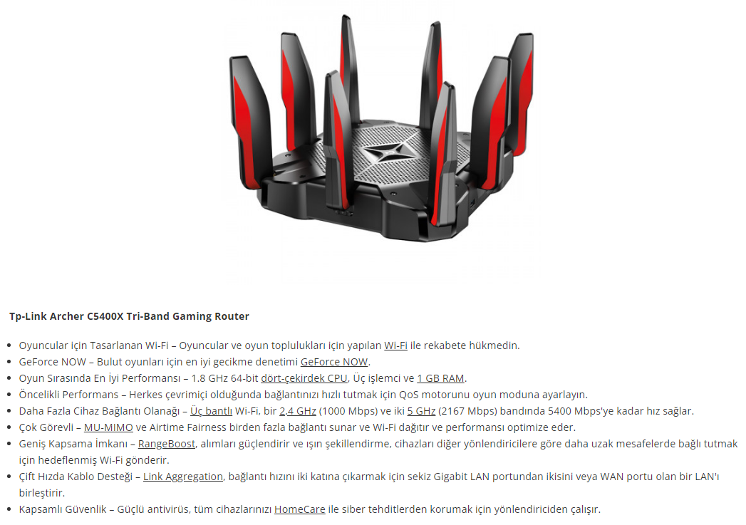 Tp-Link ARCHER C5400X 1000MBPS-2167MBPS-2167MBPS 3 BANT KABLOSUZ-AC ROUTER