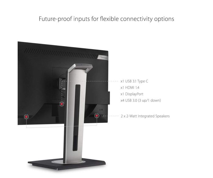 USB Type-C bağlantısına ilaveten, VG2455, geniş bir yelpazedeki cihazlara bağlanmanızı sağlayan dahili HDMI, DisplayPort, VGA ve USB 3.1 girişleri ile gelir.
