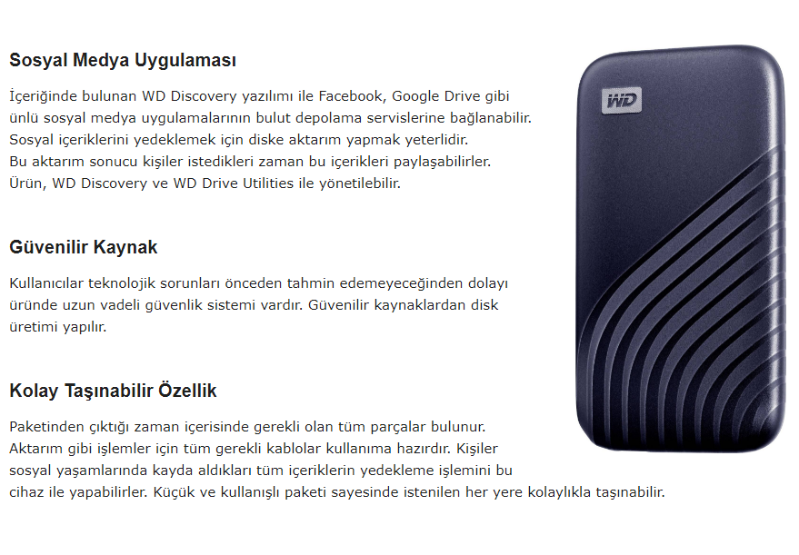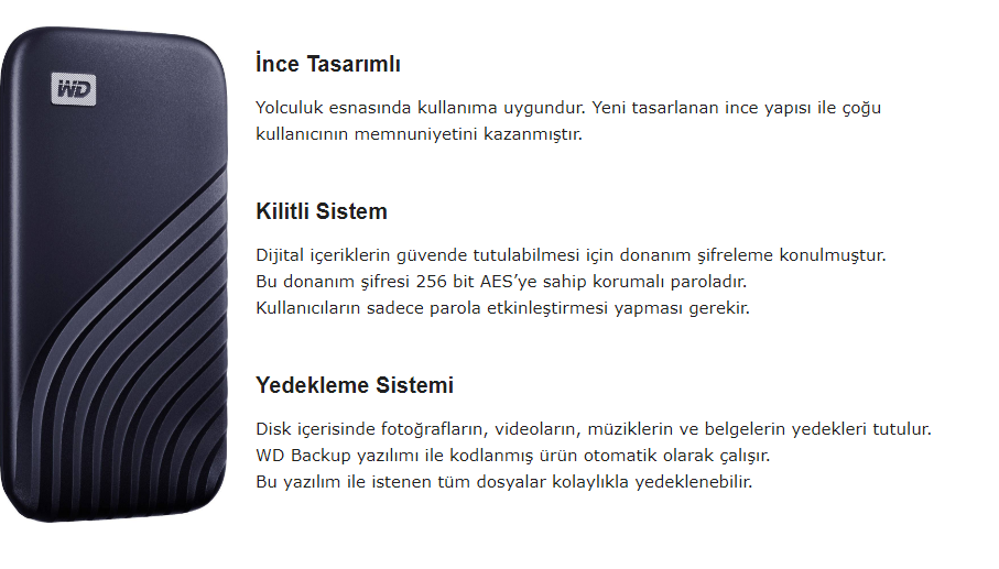 Western Digital 1TB My Passport NVMe™ Taşınabilir SSD WDBAGF0010BBL-WESN