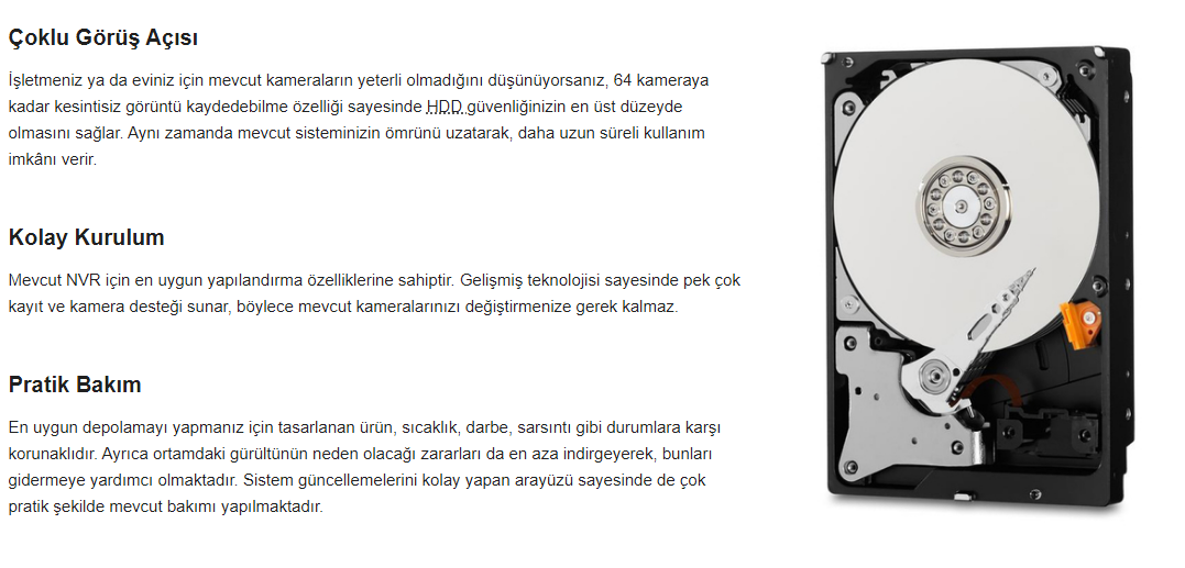 Western Digital 1TB Purple 3.5’’ 64MB Sata 6Gb/s 7/24 Güvenlik Disk WD10PURZ