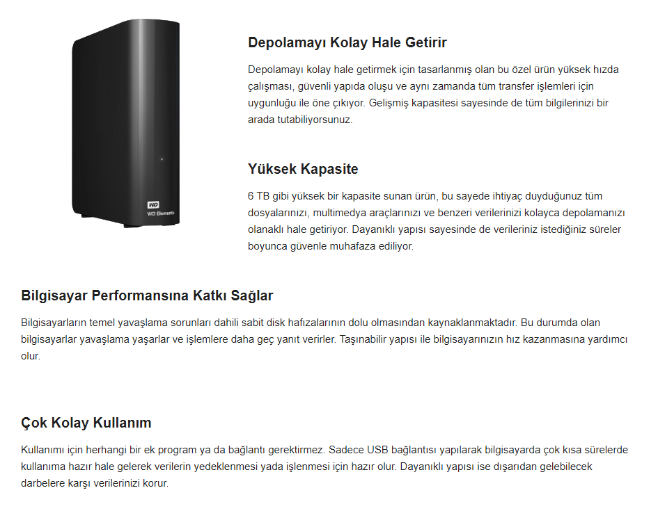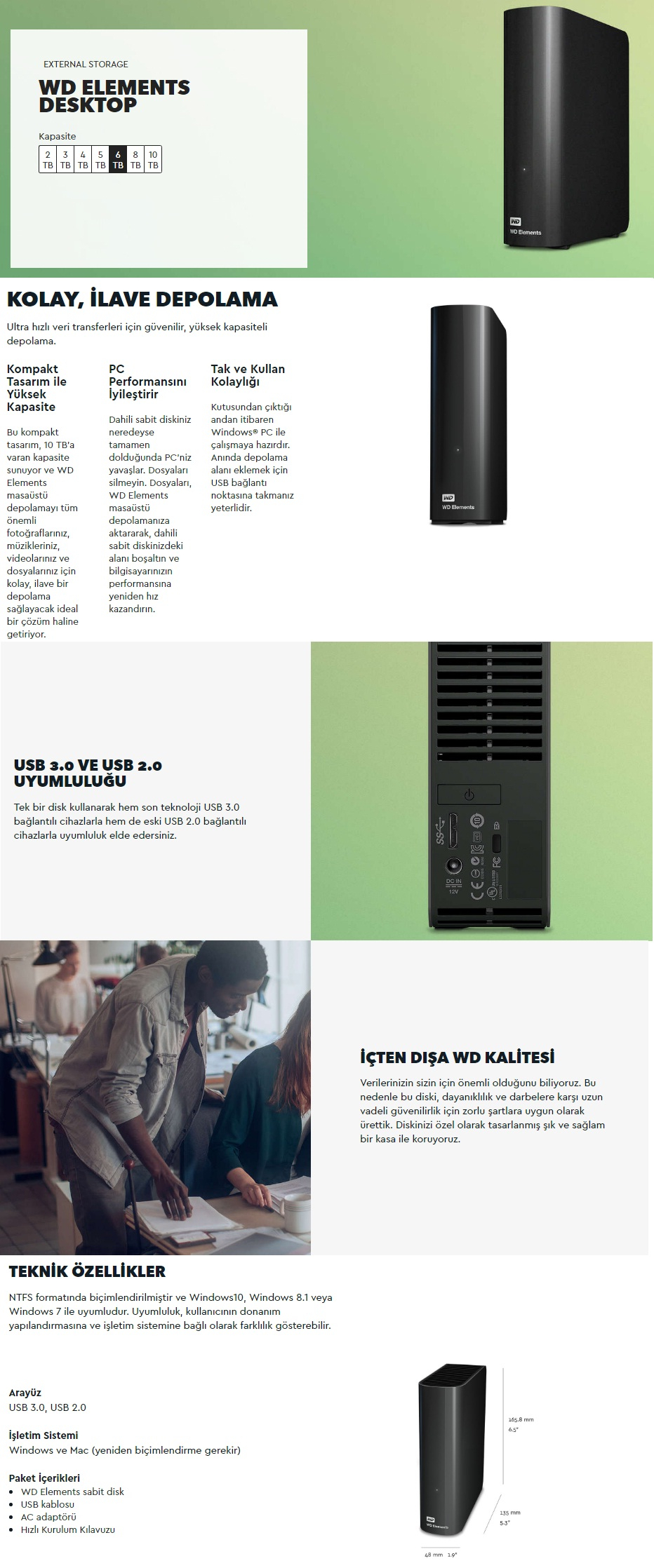 Western Digital 6TB Elements 3.5" Taşınabilir Disk WDBWLG0060HBK-EESN