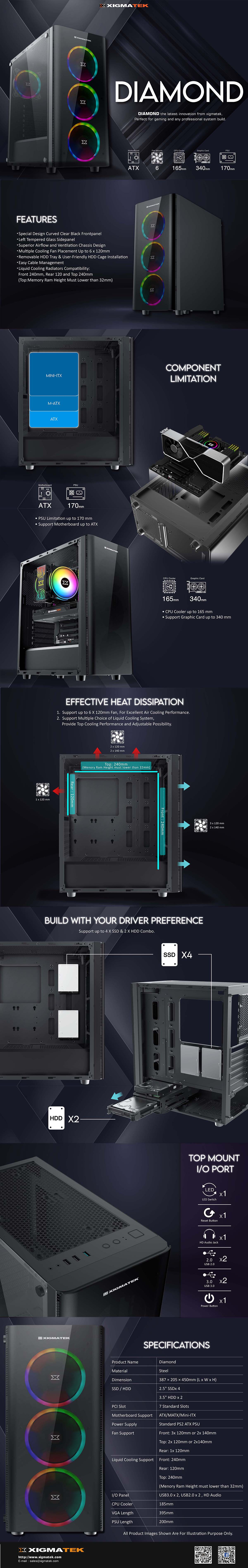 Xigmatek Diamond Temperli ATX Mid Tower Oyuncu Kasası (600W 80+Bronze PSU)